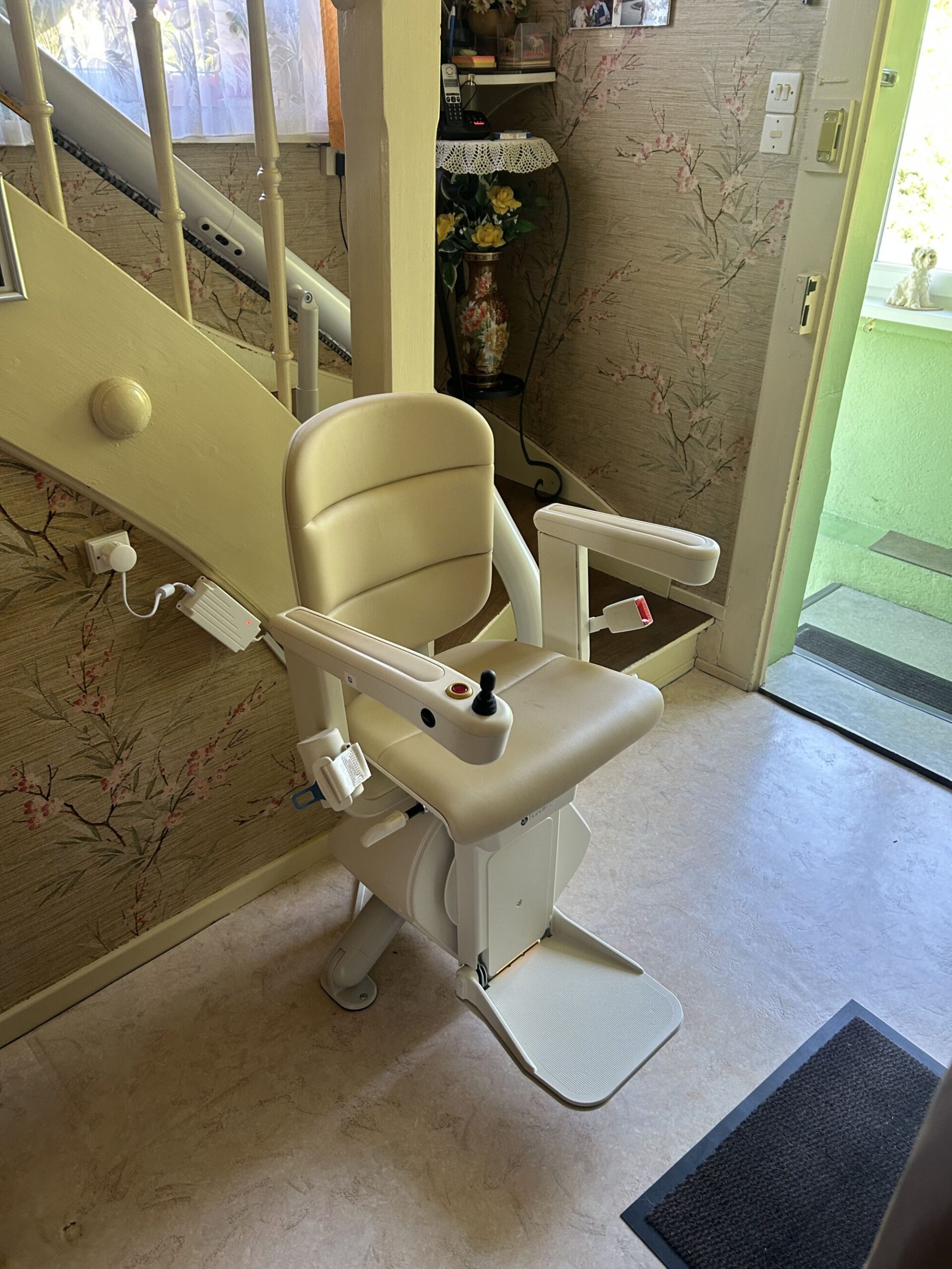 Installation récente d’un monte-escalier sur mesure Savaria Free Lift à Staffelfelden : une réalisation alliant sécurité, confort et discrétion, pour un quotidien transformé dès le premier jour.